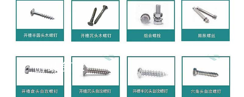 螺絲 螺絲釘可分為:不脫出螺釘、組合螺釘、墻板釘、纖維板釘、鏈帶螺釘、鉆尾螺釘、微型螺釘、電子螺釘、木螺釘等等。根據它的頭型又可分為:半沉頭、六角頭法蘭面、沉頭方頭、扁圓頭、圓柱頭、盤頭等等,根據螺絲的槽