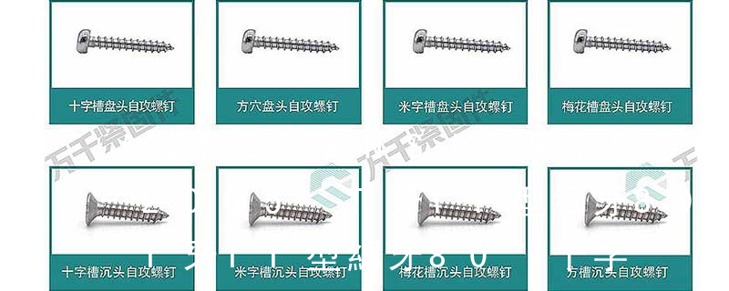 (鐵板牙自攻螺絲) B-2: Plastic Tapping Screw. (塑膠用,自攻螺絲) C: Wooden Screw : 木工螺絲 D: Drywall Screw :水泥墻螺絲 E: Self Drilling Screws鉆尾螺絲(不銹鋼鉆尾螺絲,復合材料鉆尾螺絲) F:膨脹螺絲,四片膨脹螺絲又
