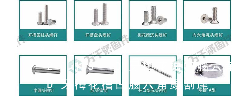 主要分類包括普通螺絲、機螺絲、自攻螺絲和膨脹螺絲三種。有頭螺釘Cap screw 過去限于全牙的扣件。六角頭螺釘Hex cap screw與大六角螺栓Hex bolt 顧名思義為頭部為六角型的外螺紋扣件,設計為使用扳手轉動。依照ASME B18.2. 不銹鋼三角牙螺絲 Stainless Steel Tri-Lobular Thread Screws 型號說明 P是指頭型是PAN頭;A是指尖尾牙,B是指平尾牙,即PA圓頭尖嘴鋼牙,PB圓頭平嘴鋼牙。自攻類:◆圓頭自攻螺絲PA ◆圓頭平尾自攻螺絲PB ◆圓頭割尾自攻
